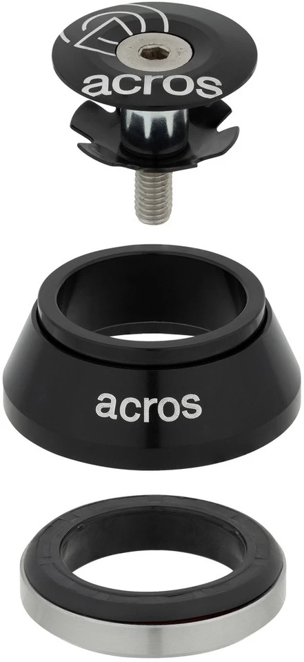 Das IS41/28,6 Steuersatz Oberteil von Acros mit vollintegrierter Bauart fĂĽr 1 1/8″ Steuerrohre und gerade Standard- oder Tapered-Gabelschäfte ist ein Rundum-sorglos-Produkt: Es ĂĽberzeugt mit doppelt gedichteten Schrägkugellagern aus Edelstahl, optimiertem Steuersatzfett und zusätzlichen Dichtungen.