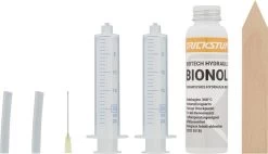 2 x Spritze Trickstuff Luer-Lock2 x Anschluss Trickstuff Luer-Lock2 x Anschluss Trickstuff M52 x Adapter Trickstuff M5 auf M42 x Schlauch Trickstuff3 x Kabelbinder Trickstuff1 x Schraube Trickstuff M2,51 x Schraube Trickstuff1 x Kanüle Trickstuff1 x Bremsflüssigkeit Trickstuff Bionol 100 ml1 x Bleedblock Trickstuff Le Block1 x Holzwerkzeug Trickstuff6 x Ersatzdichtung Trickstuff1 x Aufbewahrungsbox Trickstuff