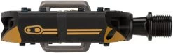 Spezifikationen:Einsatzbereich:EnduroAusfĂĽhrung:Klickpedale mit PlattformPedalsystem:crankbrothersMontage Schuhplatte:2-LochTechnische Daten:Material Pedalkörper:Aluminium (6061-T6)Material Achse:Stahl (scm435 CrMo)Lagerung:Igus LL Gleitlager (innen), Enduro Industrielager (auĂźen)Auslösewinkel:15° oder 20° (je nach Montage der Cleats)Empfohlene Schuhplatten:crankbrothers Premium CleatsAnzahl Pins pro Pedal:12Pinhöhe:8 mmDistanz Pedalmitte/Kurbelarm:52 mmFeatures:Levelcode 11 (= Pro-Level)geschmiedete Stahl-AchseFlĂĽgel aus 6al / 4v TitanFeder aus 300er Edelstahl52 mm Q-Faktor garantiert Manövrierfähigkeit auf engen Trailsintegrierte “ Traction Pads“ optimieren die Verbindung zwischen Sohle und Pedalkörperkonkave Plattform fĂĽr mehr Haltgeriffelter Körper fĂĽr mehr Grip in ausgeklicktem Zustandabgeschrägte Kanten vermindern riskante BerĂĽhrungen mit SteinenPremium-Lager, doppelt gedichtetBewegungsfreiheit und Auslösewinkel einstellbarEinstieg von vier Seitenexzellente Selbstreinigung6 Pins je Seite (wechselbar)Sechskant-Endkappe aus Aluminiumkein FahrergewichtslimitHerstellernummer:black-gold:16093Lieferumfang:1 Paar Pedale crankbrothers Mallet E 111 Paar Cleats crankbrothers Premium (Messing)