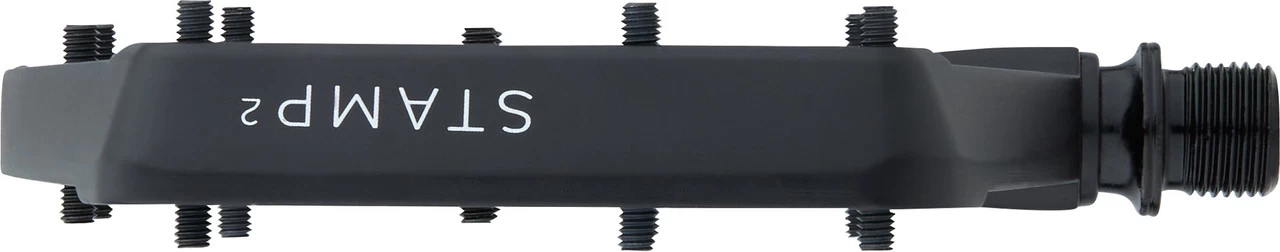 Die Stamp 2 Plattformpedale von crankbrothers kommen in zwei unterschiedlichen Plattformgrößen, sodass jeder Fahrer die für seine Schuhgröße optimale Lösung finden kann. Der Pedalkörper besteht aus Aluminium und wurde bewusst flach gehalten. Abgeschrägte Kanten minimieren die Gefahr des Hängenbleibens im Trail-, Enduro- oder Freeride-Einsatz. Die mit je 20 Pins und hochwertigen, gedichteten Lagern ausgestatteten Stamp 2 sind dank ihrer kürzeren Achse auch für E-Bikes freigegeben.