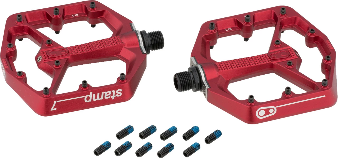 MaĂźe [L x B]:114 x 111 mmfĂĽr Schuhgröße:43 – 49Herstellernummern:16002 (black), 16003 (red)Lieferumfang:1 Paar Plattformpedale crankbrothers Stamp 710 x Ersatzpin