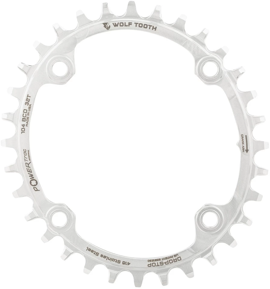 Spezifikationen:Einsatzbereich:Cross Country, All Mountain, EnduroBefestigung:104 mm Lochkreis, 4-ArmZähne:32 ZSchaltstufen:1×9-fach, 1×10-fach, ,1×11-fach, 1×12-fachAusführung:Oval 10 %Technische Daten:Kettenlinie:48 mm (3-fach Kurbel), 49 mm (2-fach Kurbel)Material:Edelstahl (416)Kompatibilität:alle Kurbeln mit 104 mm Lochkreisdurchmesseralle 9-, 10- und 11-fach-KettenSRAM Eagle, KMC, Connex und Wippermann 12-fach-Kettenfür 9-fach Schaltung wird 10-fach Kette empfohlenFeatures:Wolf Tooth PowerTrac-Elliptical- und Wide-Narrow-Designerhöhte und gleichmäßigere Trittleistung, mehr Effizienz in der Erholungszone und mehr Traktion dank gleichbleibenden DrehmomentsTiming: 112° nach TDC (Top Dead Center)aus gehärtetem, elektropoliertem Edelstahl, daher 5 – 10 Mal haltbarer als Aluminium-KettenblätterMade in the USA