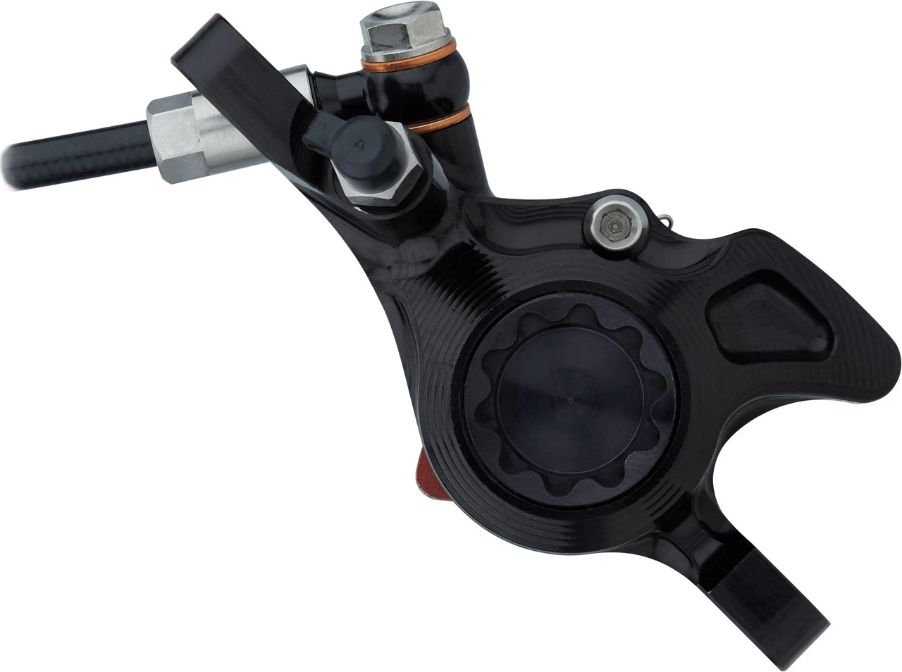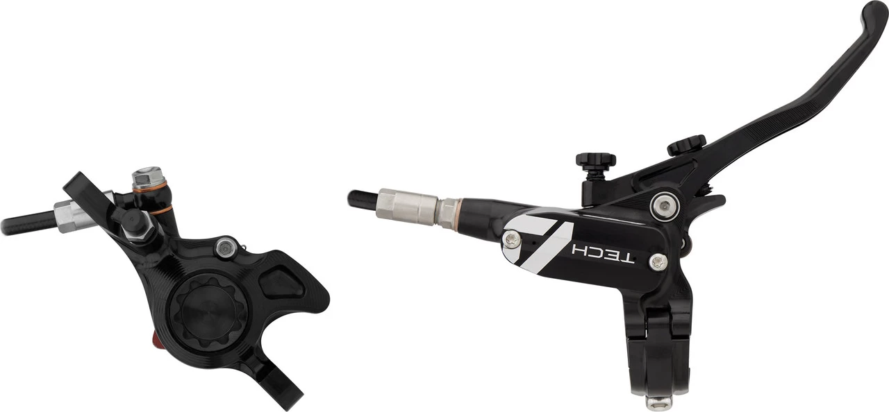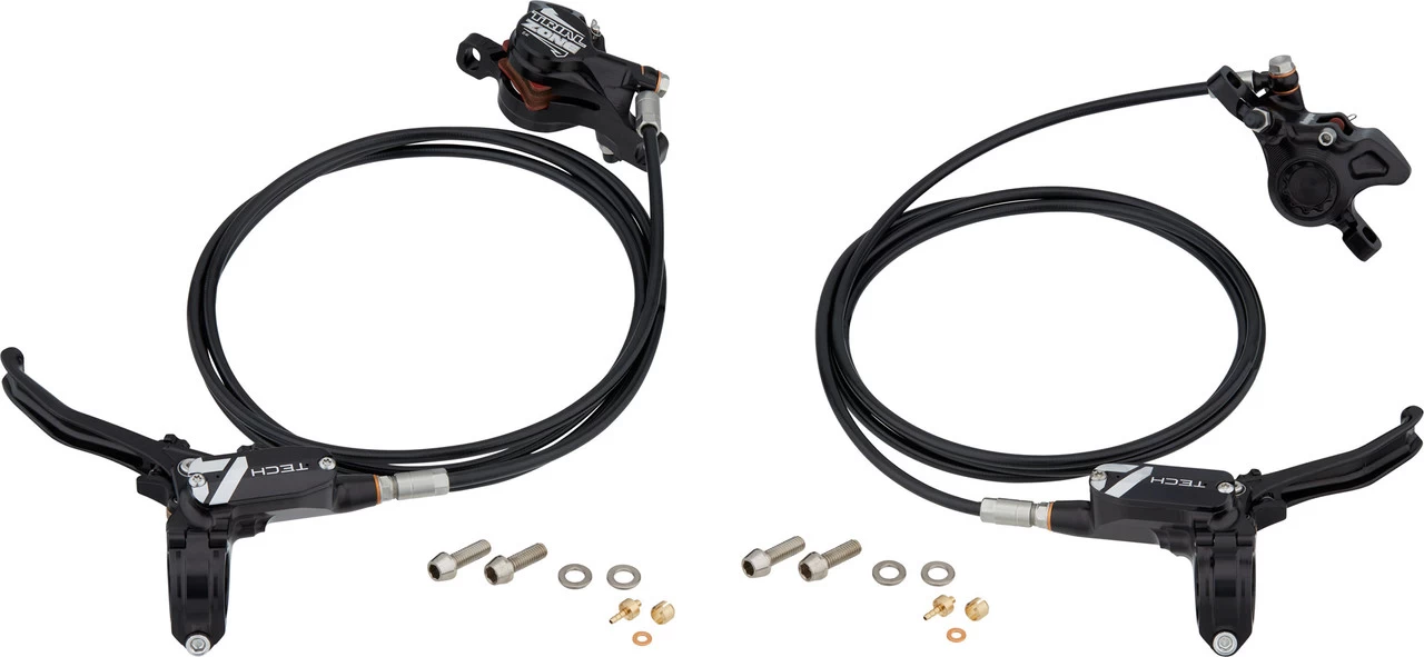 Spezifikationen:Einsatzbereich:Dirtjump & SlopestyleBremsentyp:hydraulisch, 2-KolbenBremsmedium:DOT 5.1Leitung:KunststoffLeitungslänge VR/HR:1600 mmTechnische Daten Bremssattel:Montage Bremssattel:PostmountBremsbelag:All Conditions Organic Grade ResinBauweise:einteiligMaterial Bremssattel:AluminiumMaterial Kolben:AluminiumLeitungsanschluss:BanjoTechnische Daten Bremsgriff:Hebellänge:1-FingerEinstelloptionen:Griffweiteneinstellung, DruckpunktMontage:Klemmschelle (geteilt)Bauart:rechts (seitenspezifisch), links (seitenspezifisch)Material Bremshebel:AluminiumMaterial Bremsgriffgehäuse:AluminiumLeitungsanschluss:GeradeFeatures:weiterentwickelte Technik mit deutlich mehr Druck verglichen mit Tech 3CNC-gefräster einteiliger Bremssattel2 Aluminiumkolben mit je 25 mm Durchmesserergonomische Hebelform für besseren Grip und weniger ErmüdungserscheinungenRollenlagerung im Hebelmechanismus verringert ReibungDruckpunkt und Hebelweite werkzeugfrei jederzeit anpassbarverstellbarer Hebelwinkelleichtgewichtig und kompaktgeteilte Klemmschellekürzbare KunststoffleitungHerstellernummer:T4TZ