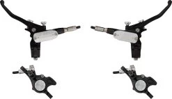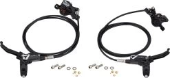 Lieferumfang:2 x Scheibenbremse Hope Tech 4 Trial Zone, montagefertig befüllt und entlüftet2 x Bremsleitung Kunststoff 1600 mm2 Paar Bremsbeläge Hope All Conditions (montiert)4 x Schraube Innensechskant4 x Unterlegscheibe groß2 x Olive2 x Insertpin2 x Unterlegscheibe klein