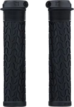 Die Sixpack Racing S-Trix CF Lenkergriffe haben einen Durchmesser von 30 mm und weisen neben einem Profil aus Sägezahnmuster und Lamellen einen Klemmring aus carbonfaserverstärktem Polyamid auf.