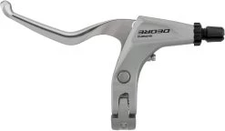 Der Shimano Deore BL-T611 Bremsgriff ist für den Einsatz am Trekking-Bike gedacht und verfügt über einen Hebel in klassischer 3-Finger-Länge. Er lässt sich mit V-Brakes und mechanischen Disc Bremsen verwenden. Seine leichtgängige Bedienung vermag in technischer Hinsicht ebenso zu überzeugen wie seine sportliche Erscheinung in Sachen Optik. Dank I-Spec (B) Kompatibilität kann man den Deore Bremsgriff im Übrigen mit einem passenden Schaltgriff kombinieren, um am Lenker Platz zu sparen. BL-T611 ist in Schwarz oder Silber, einzeln oder als Satz erhältlich.