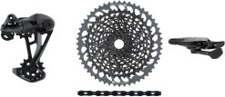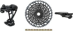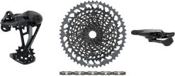 Dieses SRAM Upgrade-Kit der Serie GX Eagle fĂĽr 1×12-fach-Antriebe hat die passende Kassette direkt dabei. Es setzt sich zusammen aus dem neuesten GX Eagle Schaltwerk, passendem GX Eagle Trigger Schaltgriff, einer XG-1275 Kassette sowie einer PC XX1 Eagle oder PC GX Eagle Kette.