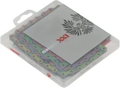 Farbindex:rainbow:buntcopper:kupferrotHerstellernummern:gold:00.2518.024.020black:00.2518.024.021rainbow:00.2518.039.010copper:00.2518.043.010Lieferumfang:1 x Kette SRAM PC XX1 Eagle1 x Kettenschloss SRAM PowerLock